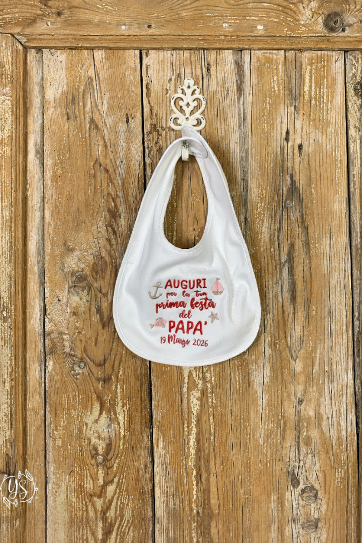 Celebra la tua prima Festa del Papà con questo bavaglino neonato ricamato. Stupisci il tuo papà con un regalo personalizzato e originale per un giorno speciale.