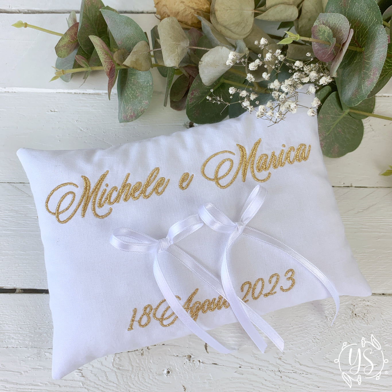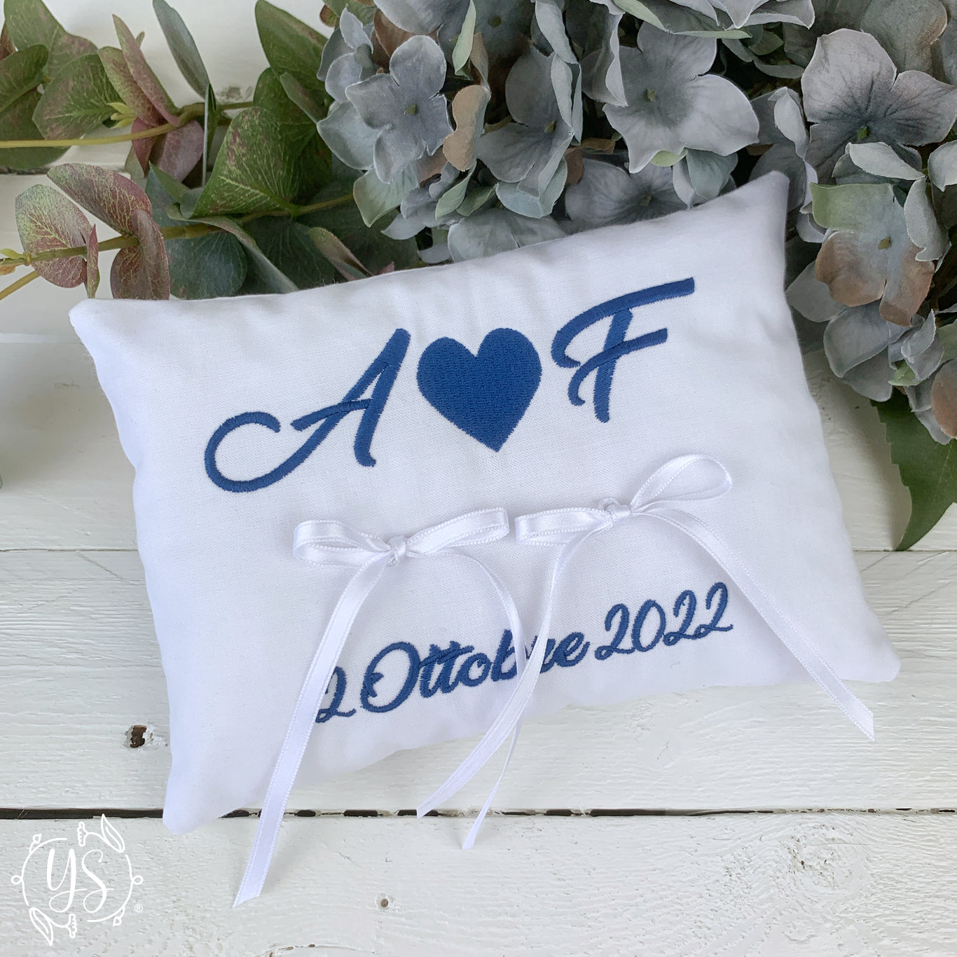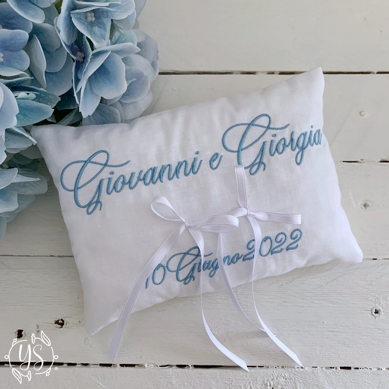 I momenti speciali meritano dettagli unici. I nostri cuscini e telai porta fedi sono ricamati e interamente personalizzabili con nomi, date o frasi d’amore. Perfetti per accompagnare il vostro 'sì' con dolcezza ed eleganza, saranno un ricordo prezioso da custodire per sempre.