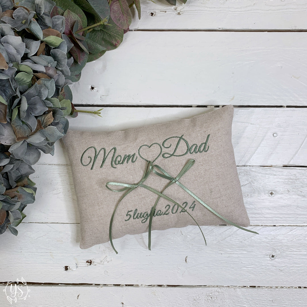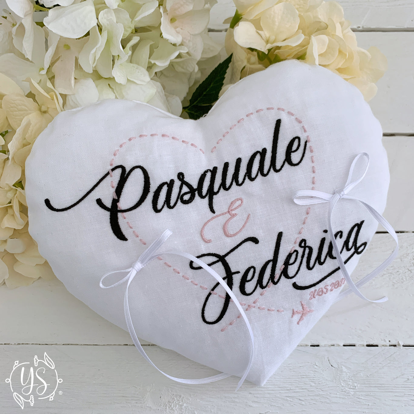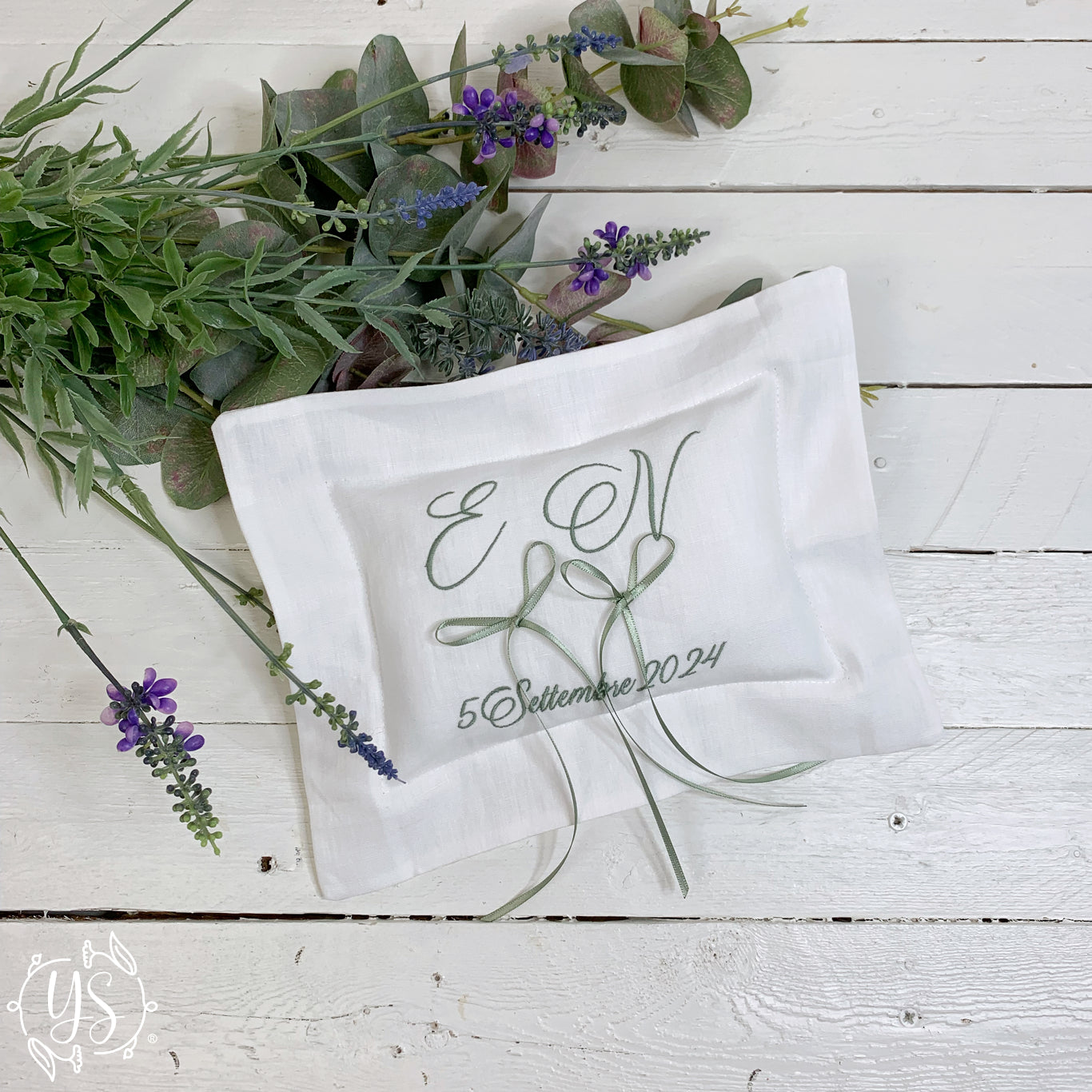 I momenti speciali meritano dettagli unici. I nostri cuscini e telai porta fedi sono ricamati e interamente personalizzabili con nomi, date o frasi d’amore. Perfetti per accompagnare il vostro 'sì' con dolcezza ed eleganza, saranno un ricordo prezioso da custodire per sempre.