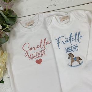 Ecco il modo più dolce per annunciare una gravidanza o celebrare i nuovi fratellini e sorelline con questi prodotti ricamati che rimarranno un ricordo per sempre!