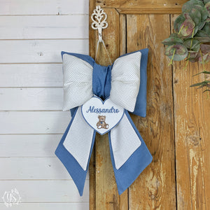 Esprimi amore e gioia con i nostri fiocchi nascita personalizzati. Ogni fiocco è un'opera d'arte unica, realizzata con materiali di alta qualità e arricchita da dettagli ricamati su misura.