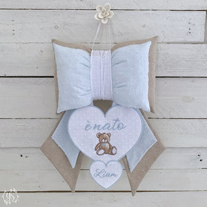 Rendi il momento della nascita ancora più speciale con i nostri fiocchi personalizzati. Scegli tra una varietà di design e colori, e aggiungi un tocco personale con il ricamo del nome del tuo bambino