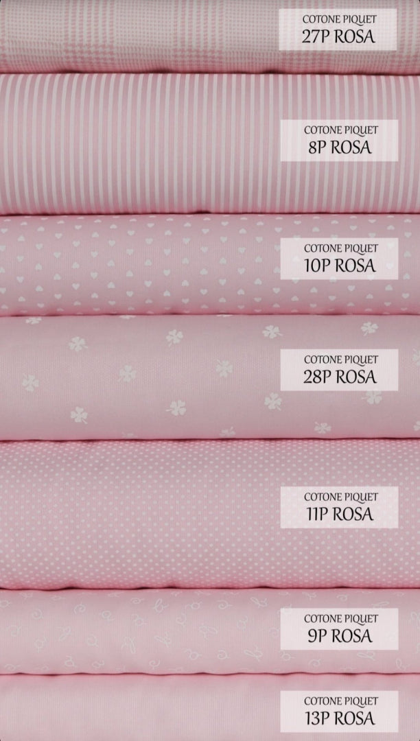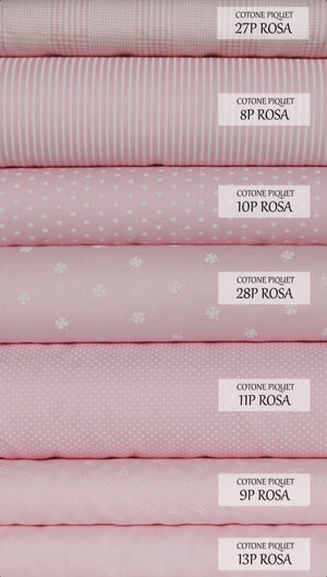 TESSUTO: cotone a righe rosa e bianche con cuore bianco e contorno rosa in tinta al tessuto
