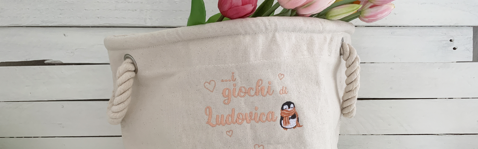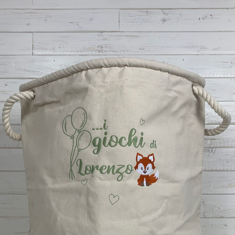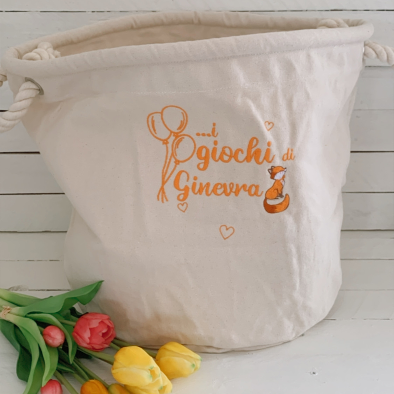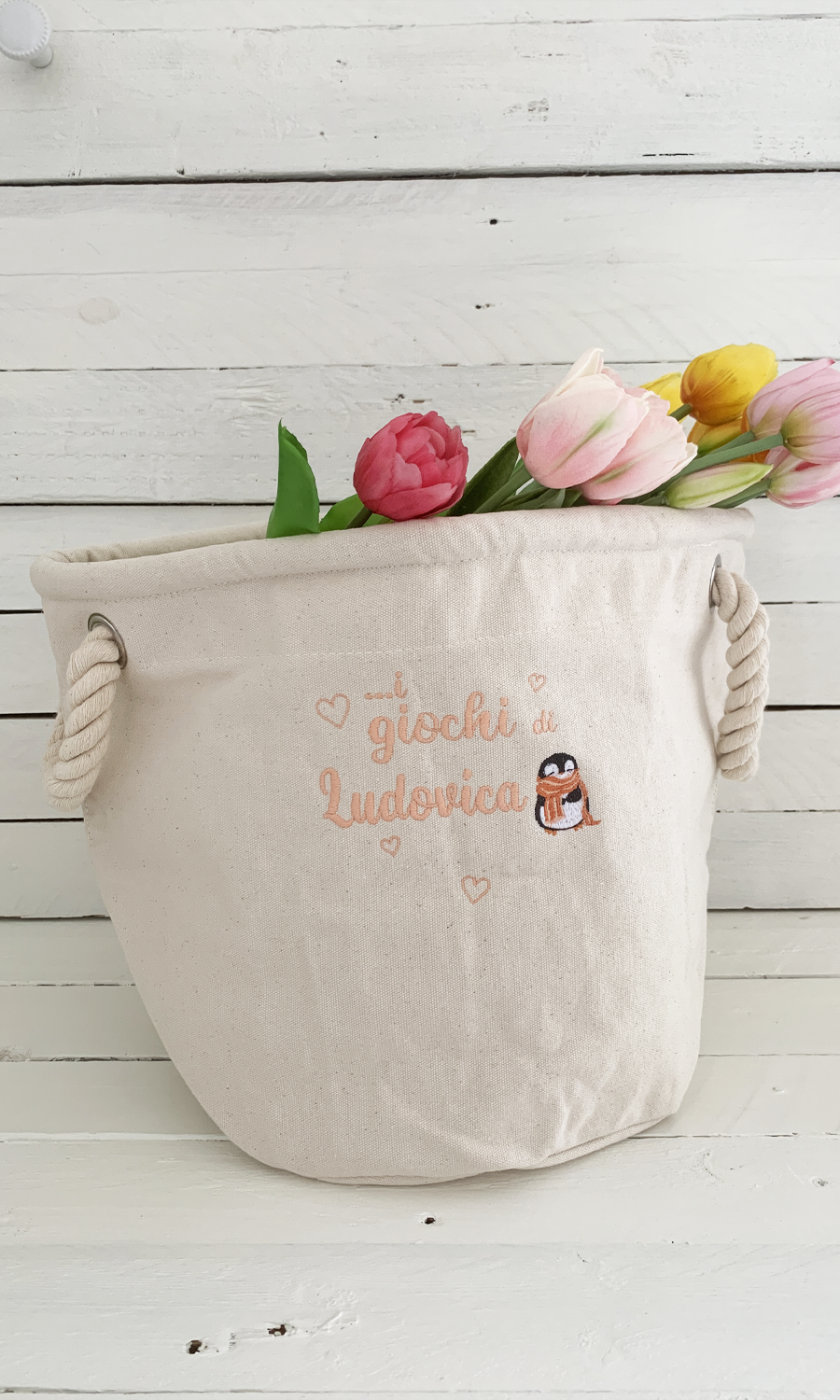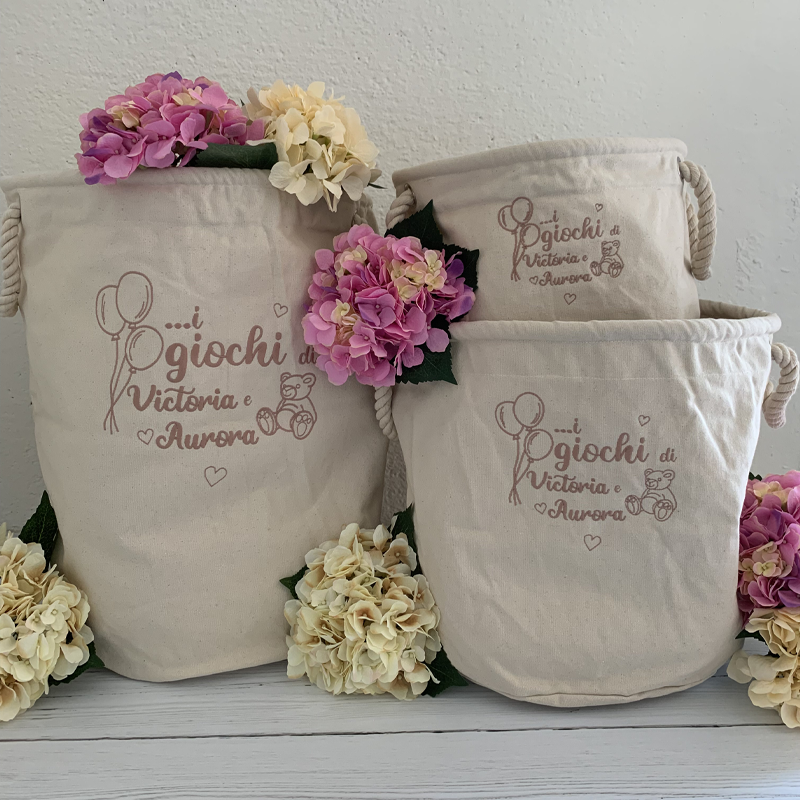 Le nostre ceste portagiochi in stoffa personalizzabili con ricami sono l'accessorio perfetto per trasformare lo spazio dei giochi dei bambini con un tocco di personalità unica. Scopri la nostra collezione e rendi l'organizzazione un'esperienza piacevole e alla moda.