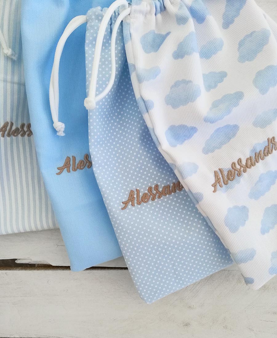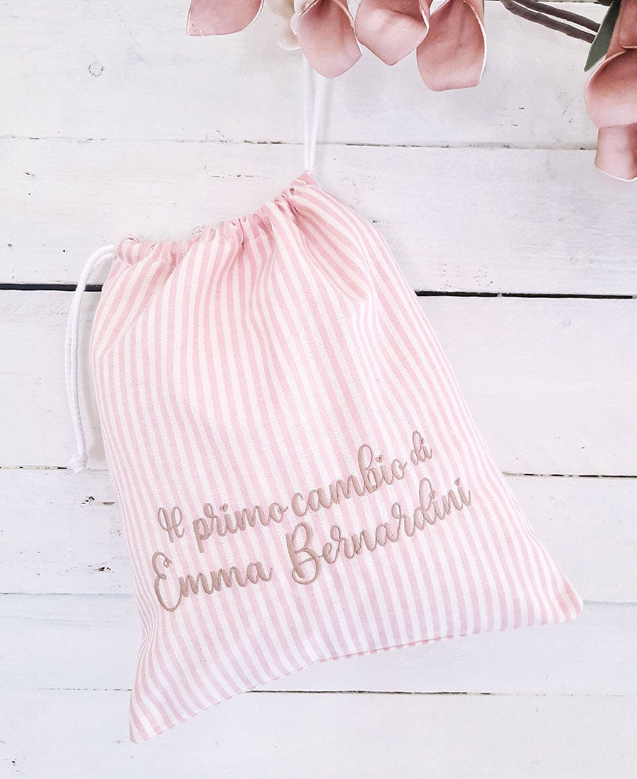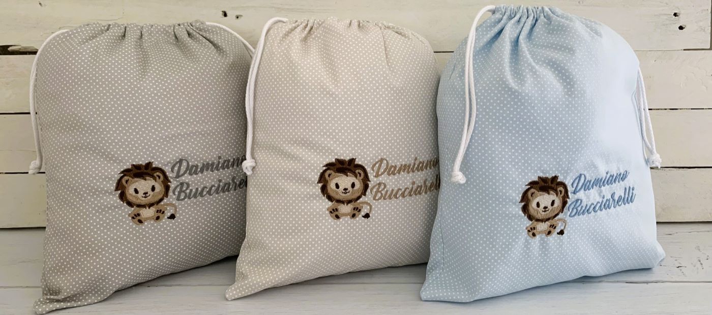 Scegli e personalizza la tua nuova sacca cambio. Perfetta per l’asilo, ma anche per tutti i giorni e per i primi cambi in ospedale. Cucite e ricamate interamente da noi, ma personalizzate da voi: scegli tra una vasta gamma di colori, font e motivi per aggiungere il nome del tuo bambino, un disegno personalizzato o un messaggio speciale!
