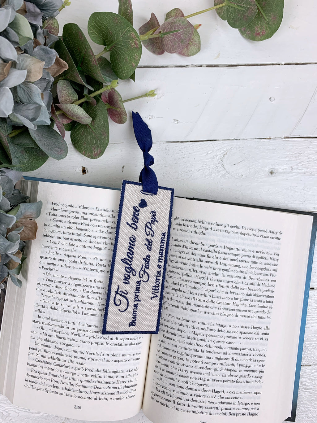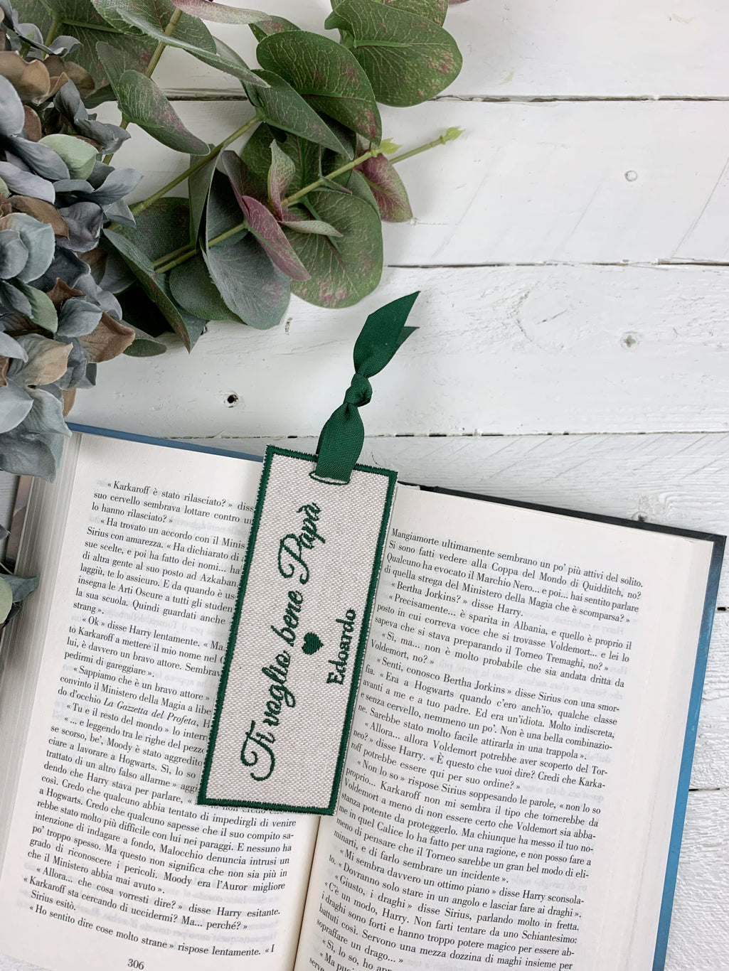 Per i papà che amano leggere: fai in modo che ogni pagina sia accompagnata da un oggetto speciale, come i nostri segnalibri ricamati con dediche personalizzate! Che la festa del papà sia un capitolo speciale di amore e gratitudine!