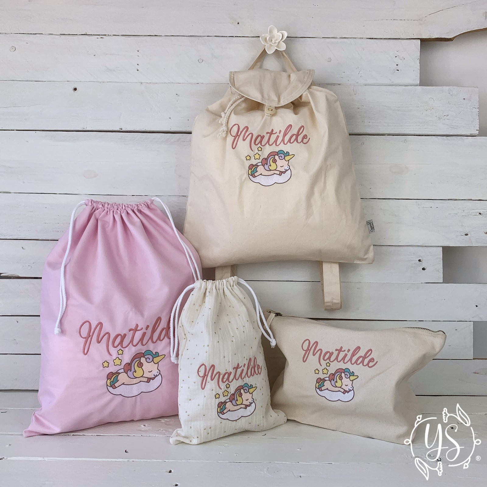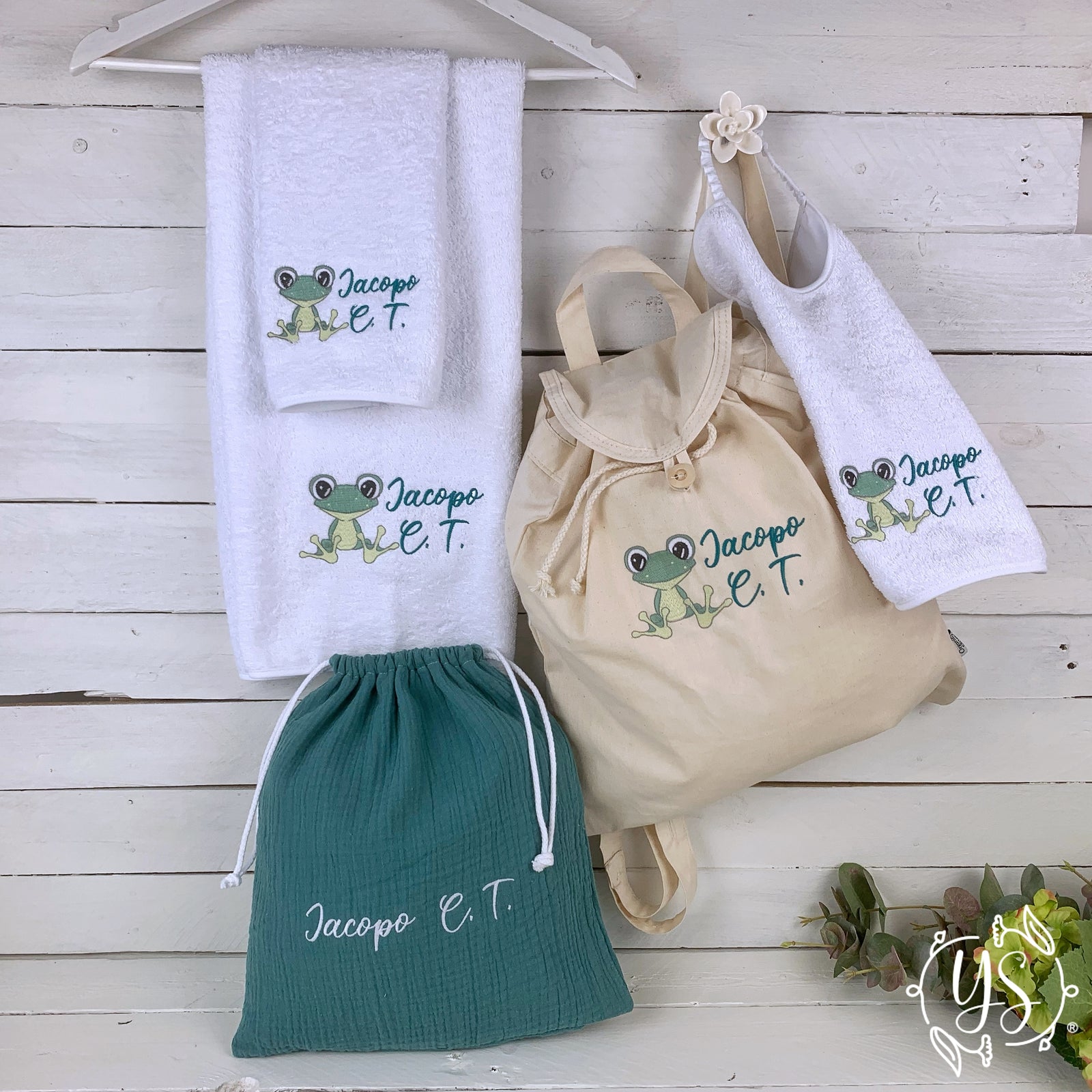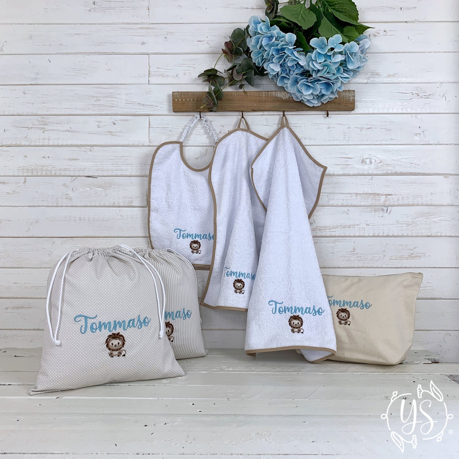 Esplora la nostra collezione di set asilo, progettati con amore e attenzione ai dettagli. Dagli zaini e le sacche, ai bavaglini, asciugamani e tanto altro, ogni elemento è personalizzabile con ricami che riflettono la personalità e gli interessi del tuo bambino, dai nomi e iniziali ai disegni tematici, garantiamo che ogni pezzo sia unico e significativo. Scegli tra una varietà di stili, colori e motivi per creare un kit per la scuola dell’infanzia che si adatti perfettamente al mondo unico del tuo piccolo.