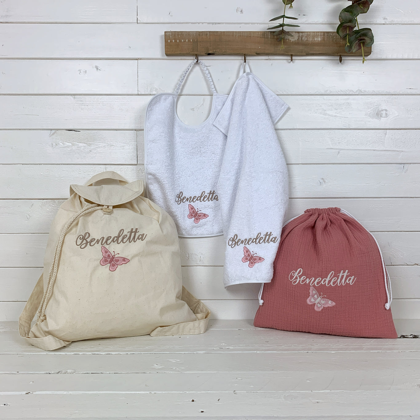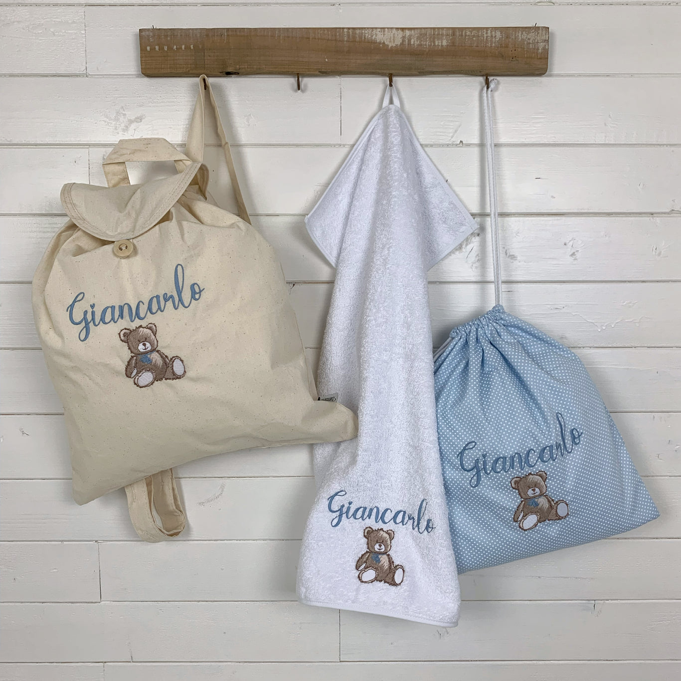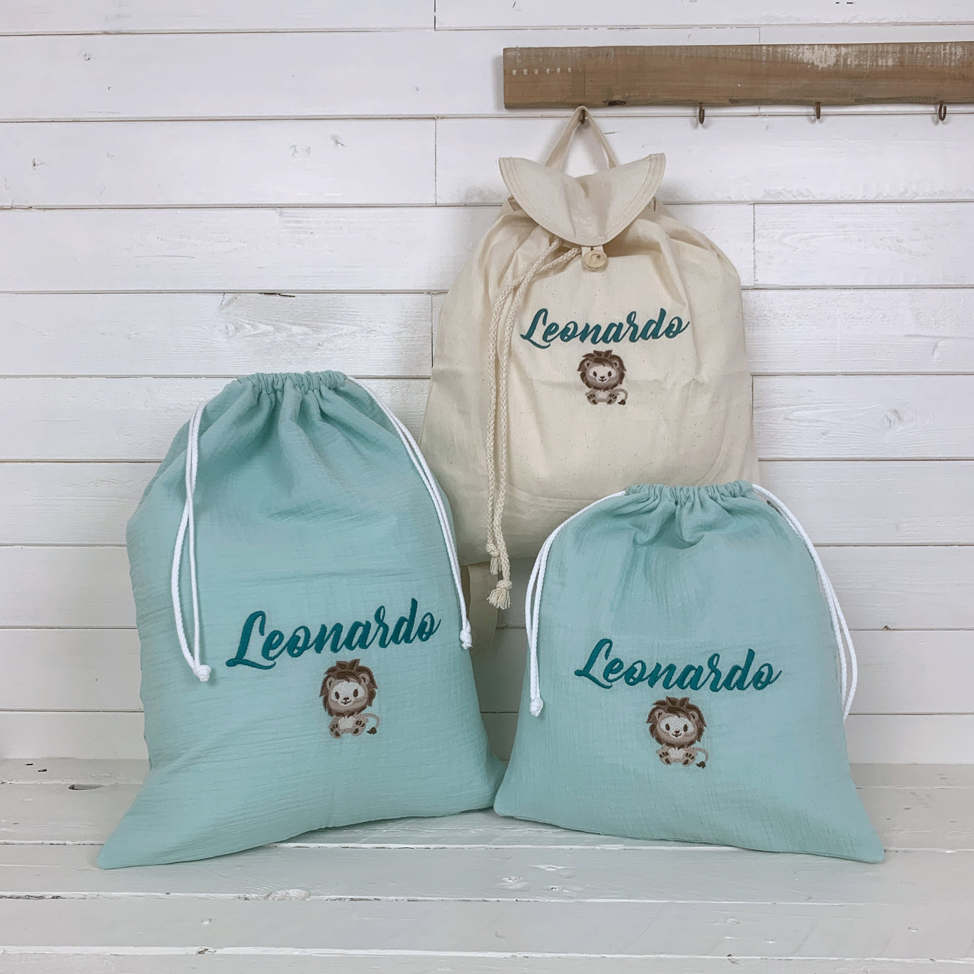 Esplora la nostra collezione di set asilo, progettati con amore e attenzione ai dettagli. Dagli zaini e le sacche, ai bavaglini, asciugamani e tanto altro, ogni elemento è personalizzabile con ricami che riflettono la personalità e gli interessi del tuo bambino, dai nomi e iniziali ai disegni tematici, garantiamo che ogni pezzo sia unico e significativo. Scegli tra una varietà di stili, colori e motivi per creare un kit per la scuola dell’infanzia che si adatti perfettamente al mondo unico del tuo piccolo.