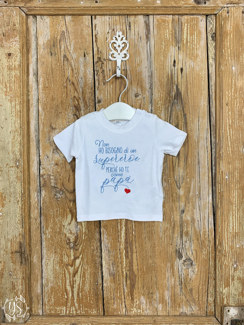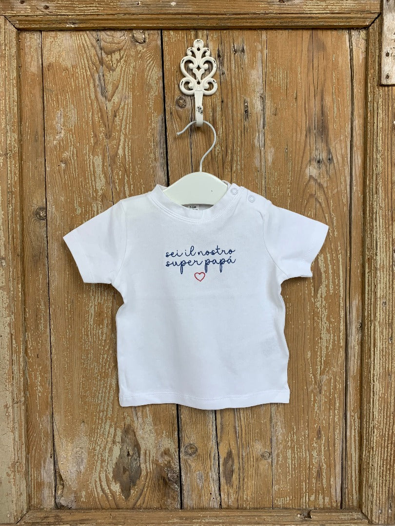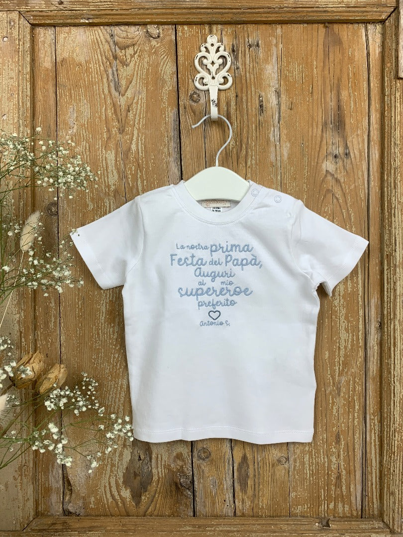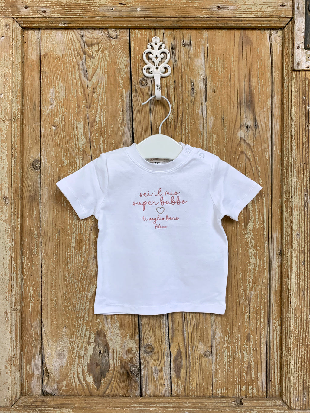 Vesti il tuo piccolo amore con dolci dediche per il suo super papà! Le nostre t-shirt neonato personalizzate sono un regalo che fonde comfort e amore, e sono perfette per celebrare la festa del papà!