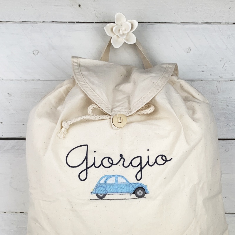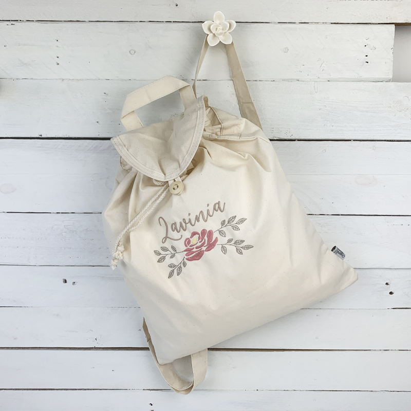 I nostri zaini in stoffa personalizzabili con ricami sono l'accessorio perfetto per portare con te i tuoi oggetti essenziali con stile e originalità. I ricami personalizzati aggiungono un tocco di originalità e permettono di creare un accessorio unico e speciale che si adatta a diverse occasioni di utilizzo: scegli tra una vasta gamma di colori, font e motivi per aggiungere il tuo nome, un disegno personalizzato o un messaggio speciale che ti ispiri.