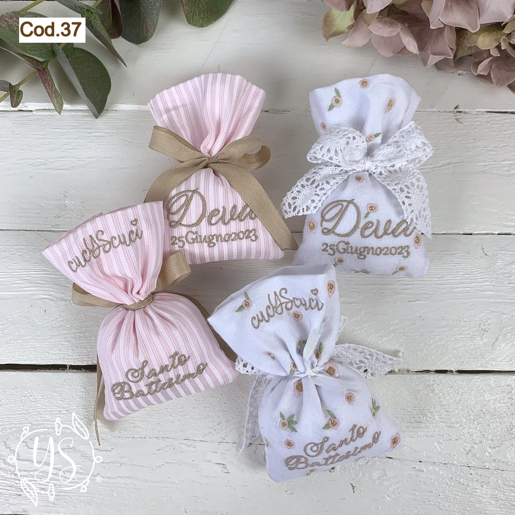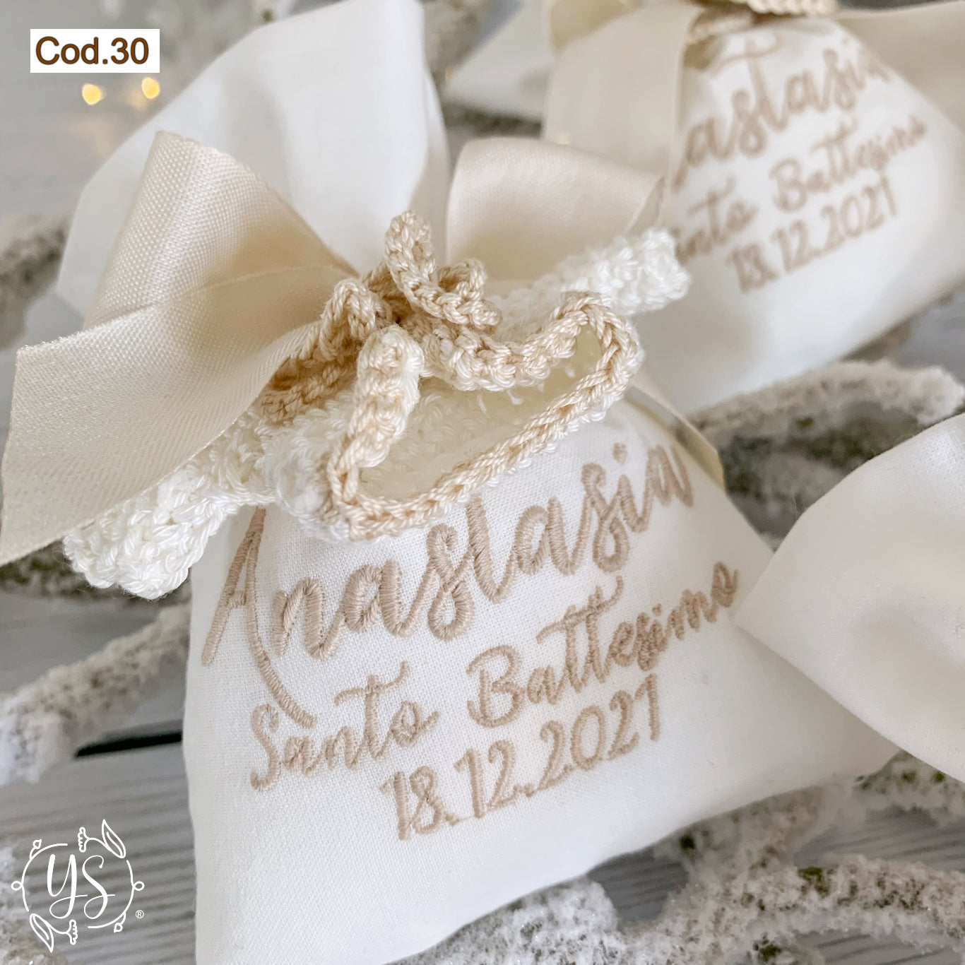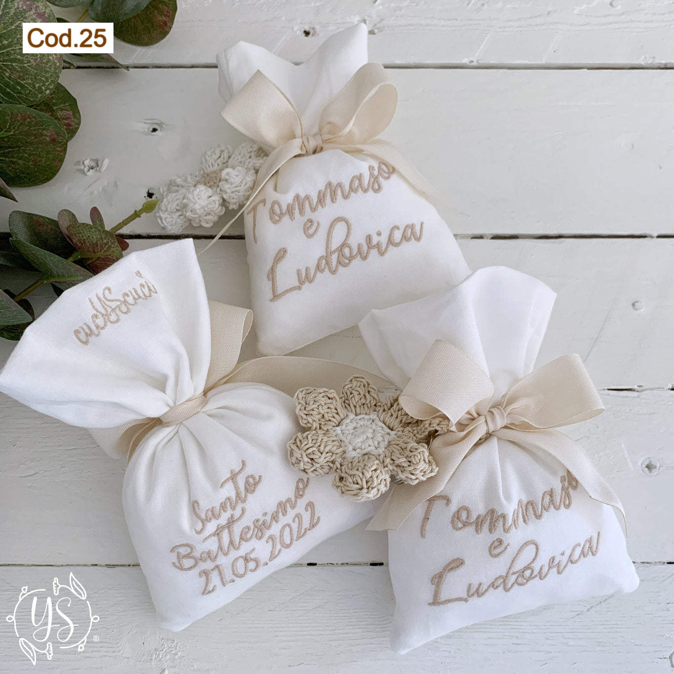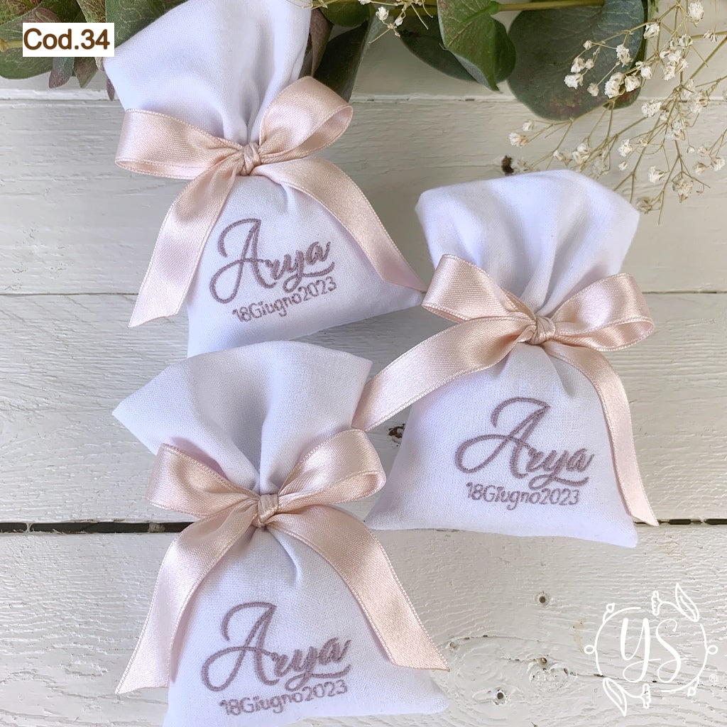 Puoi acquistarlo anche non confezionato (il solo sacchettino ricamato senza imbottitura, confetti, e nastrino).
