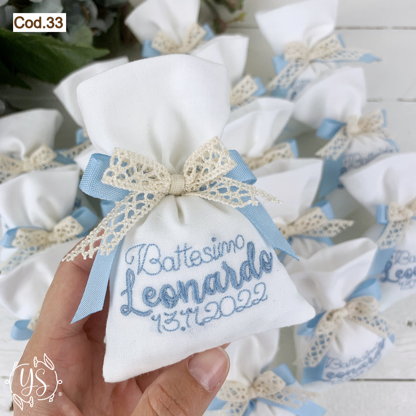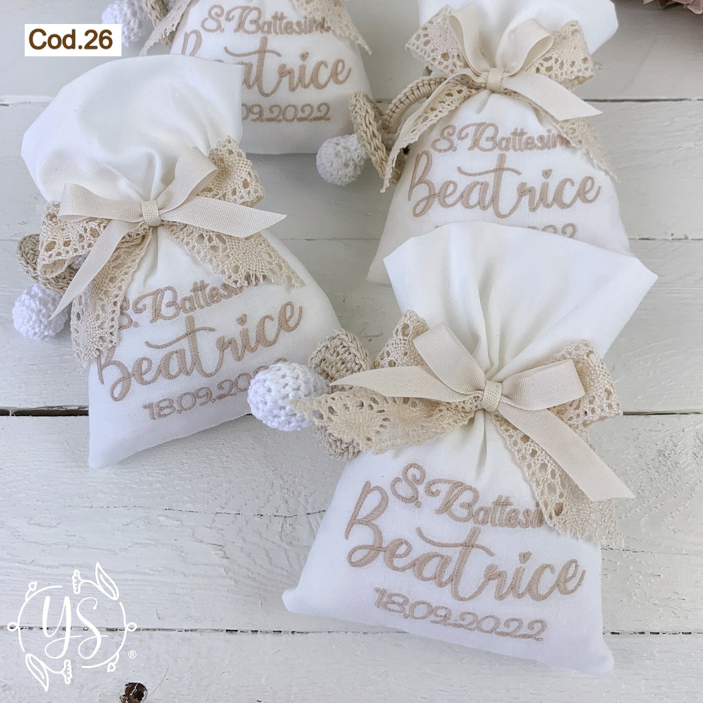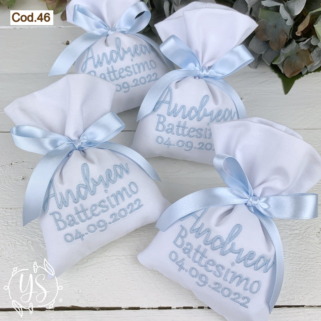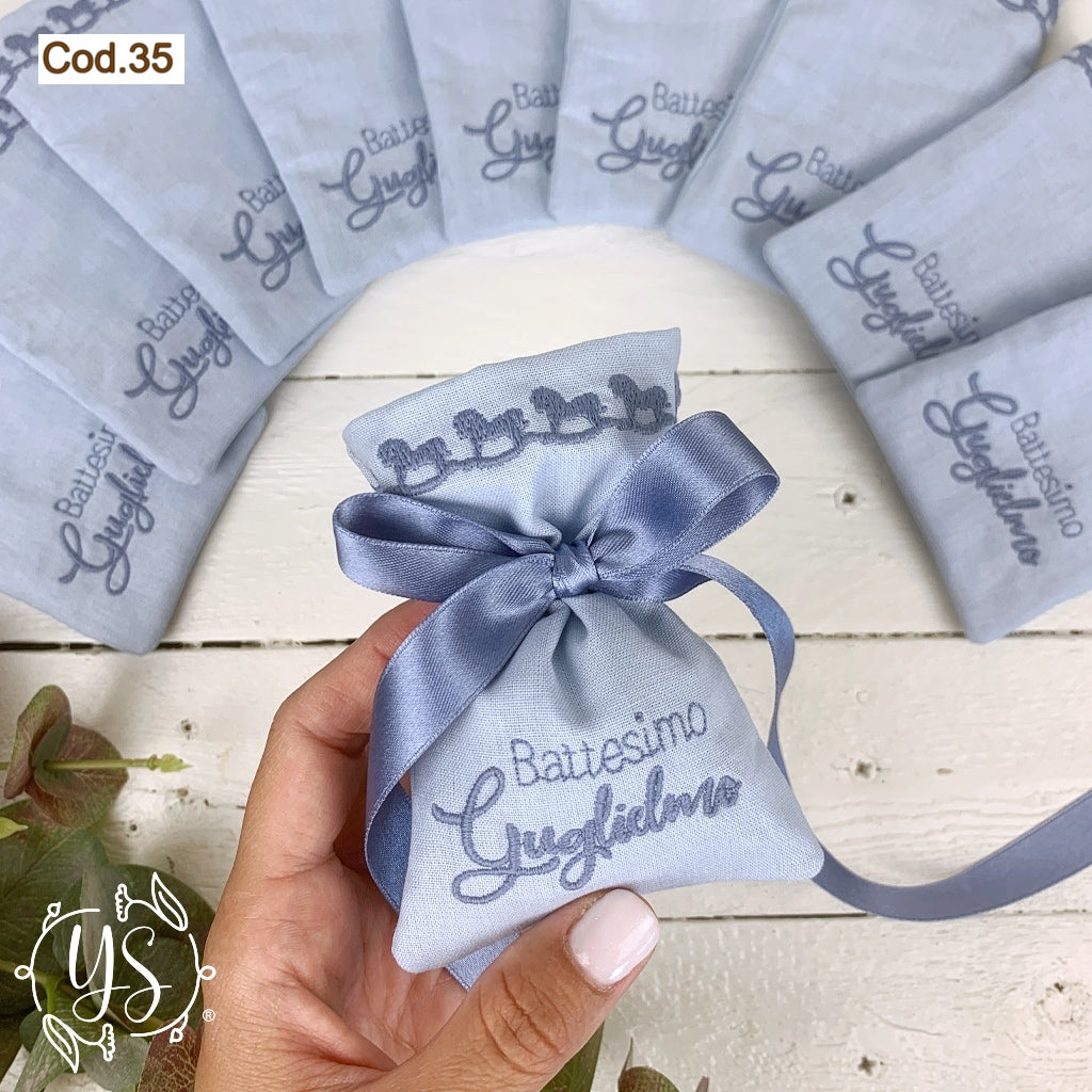 Puoi acquistarlo anche non confezionato (il solo sacchettino ricamato senza imbottitura, confetti, e nastrino).
