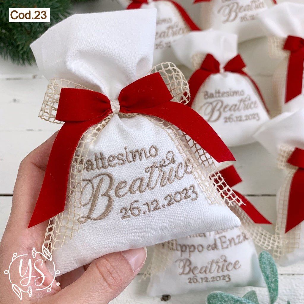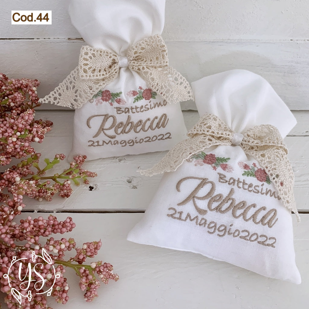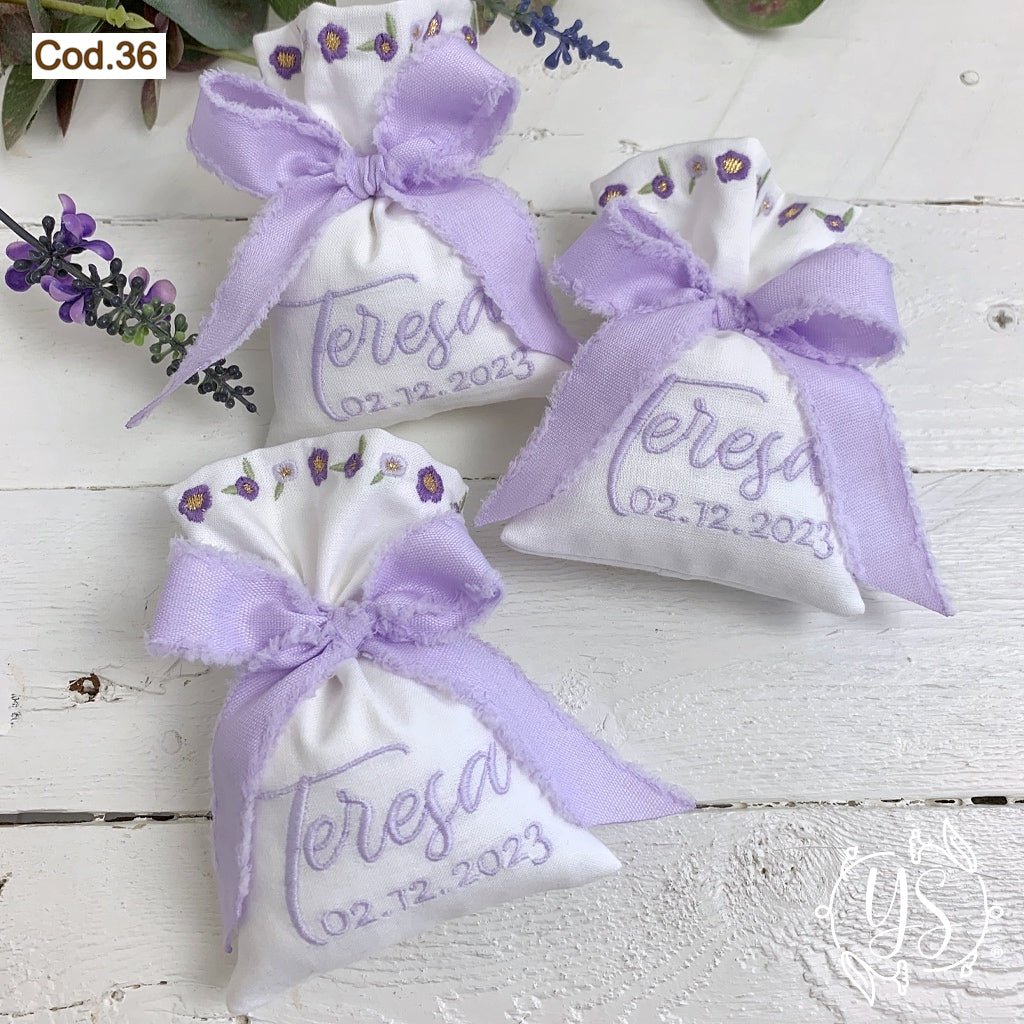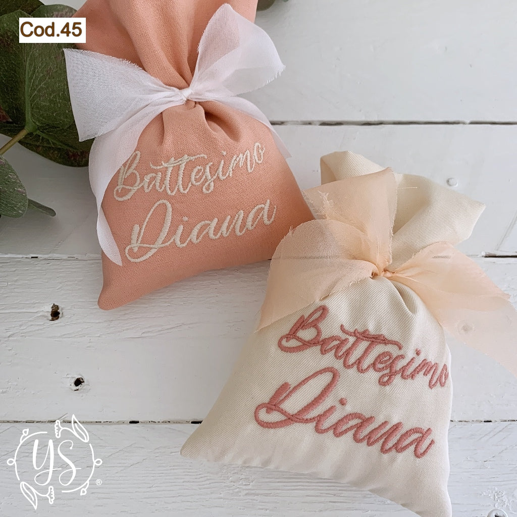 Puoi acquistarlo anche non confezionato (il solo sacchettino ricamato senza imbottitura, confetti, e nastrino).