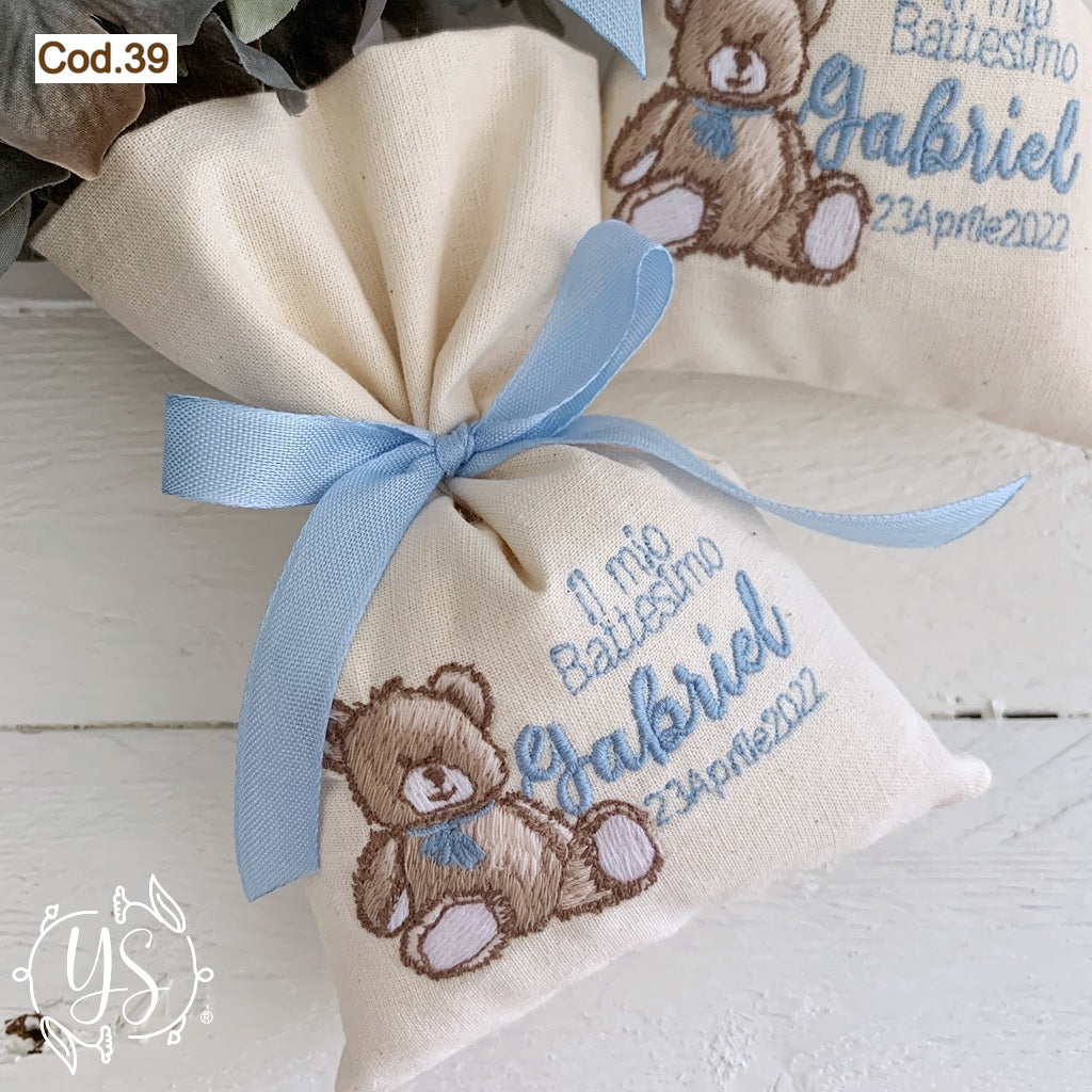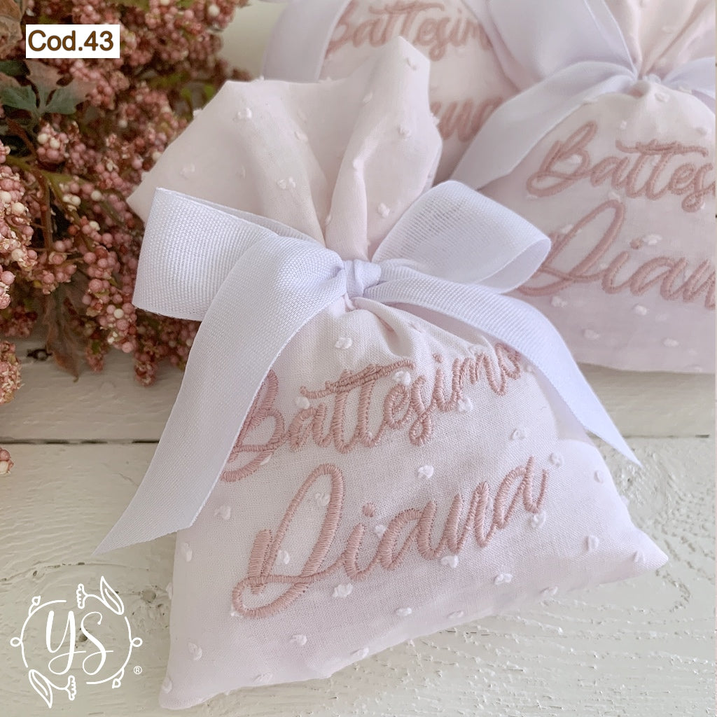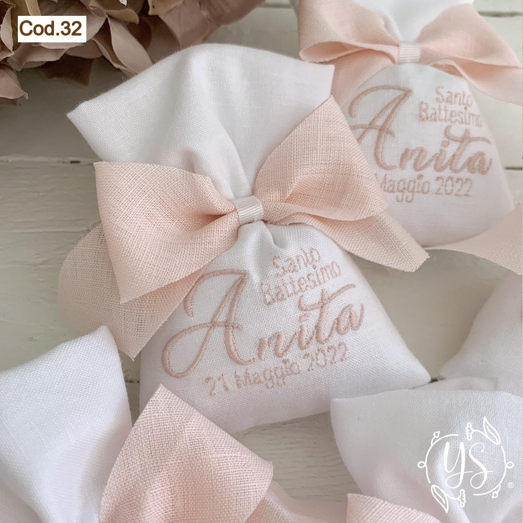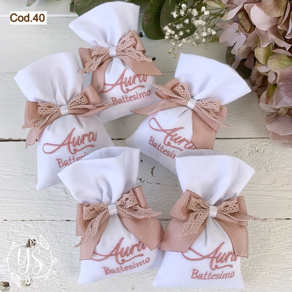 Puoi acquistarlo anche non confezionato (il solo sacchettino ricamato senza imbottitura, confetti, e nastrino). Non confezionata 2,80 € in meno al pezzo.
