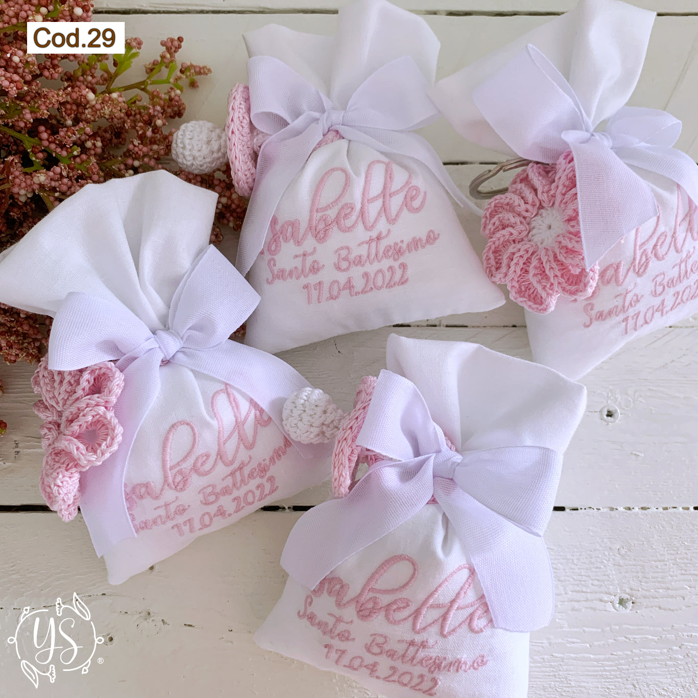 Puoi acquistarlo anche non confezionato (il solo sacchettino ricamato senza portachiavi, imbottitura, confetti e nastrino).