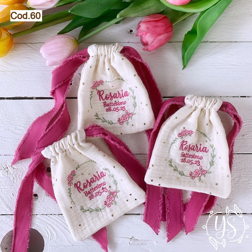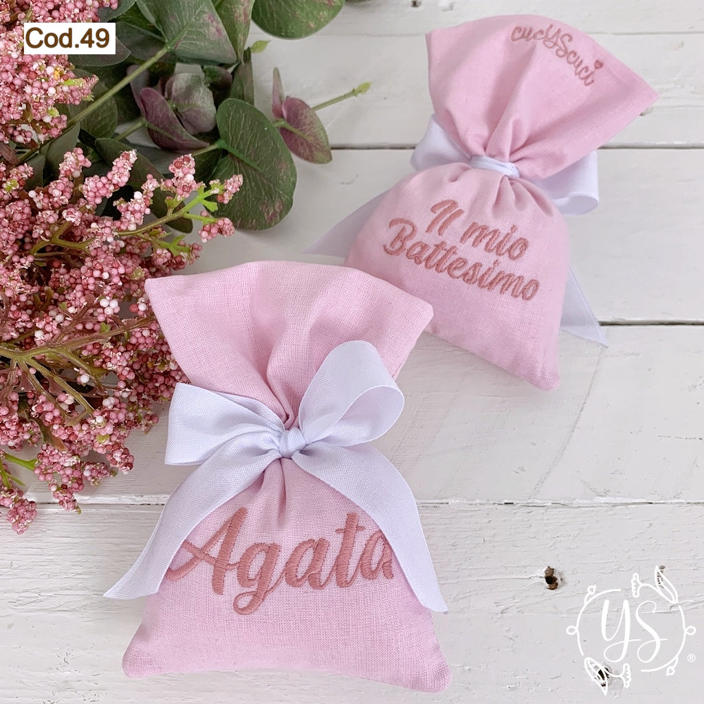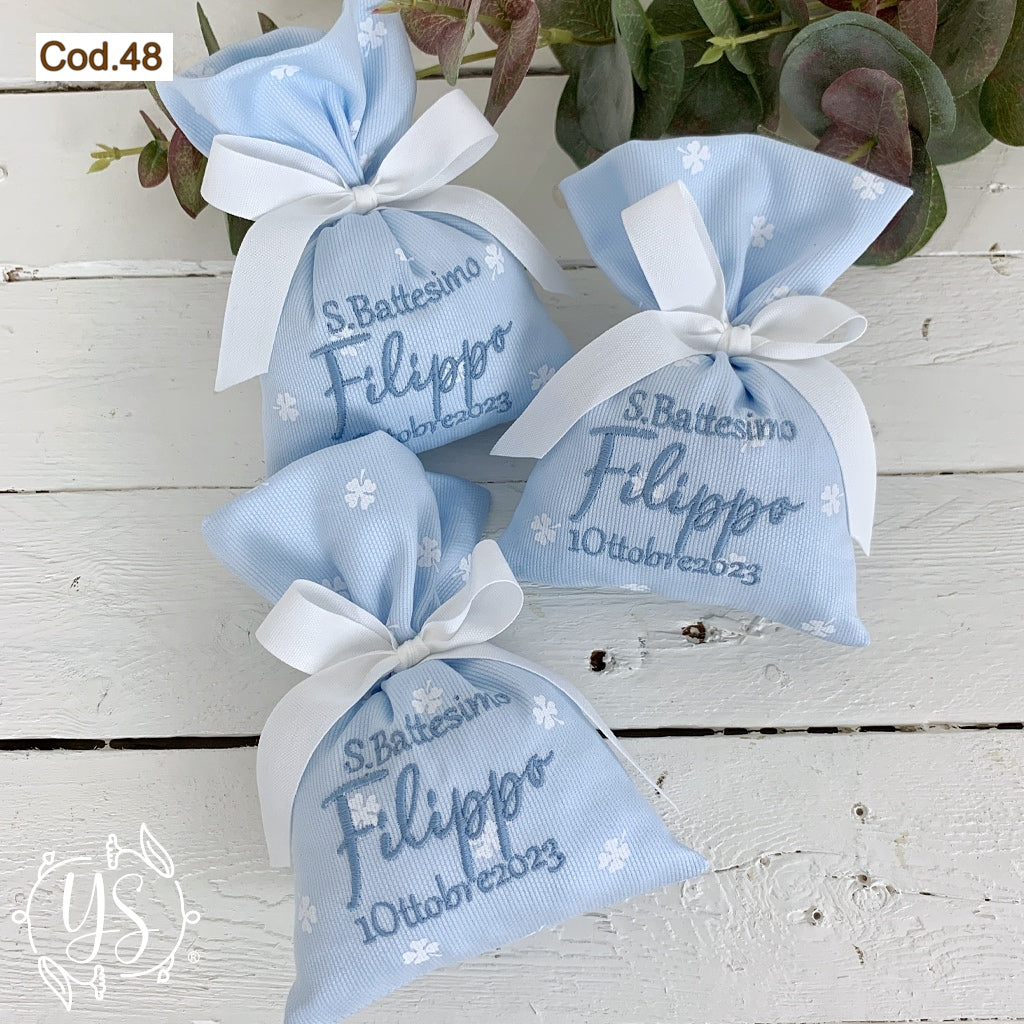 Puoi acquistarlo anche non confezionato (il solo sacchettino ricamato senza imbottitura, confetti, e nastrino).