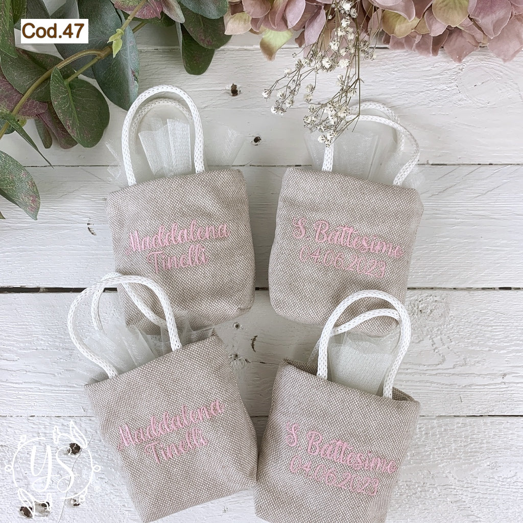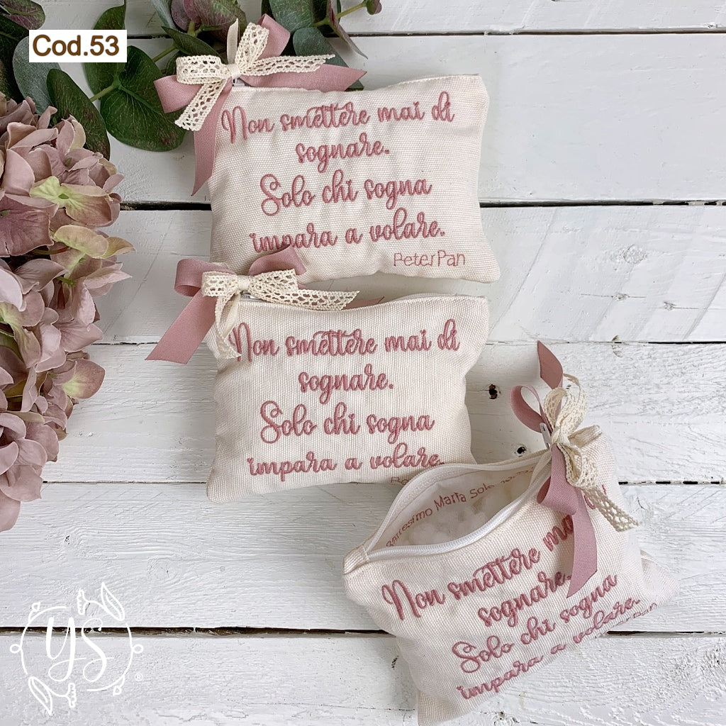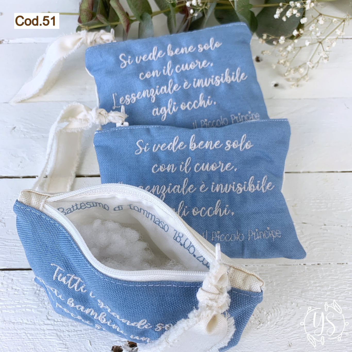 Puoi acquistarlo anche non confezionato (il solo sacchettino ricamato senza imbottitura, confetti, e nastrino).