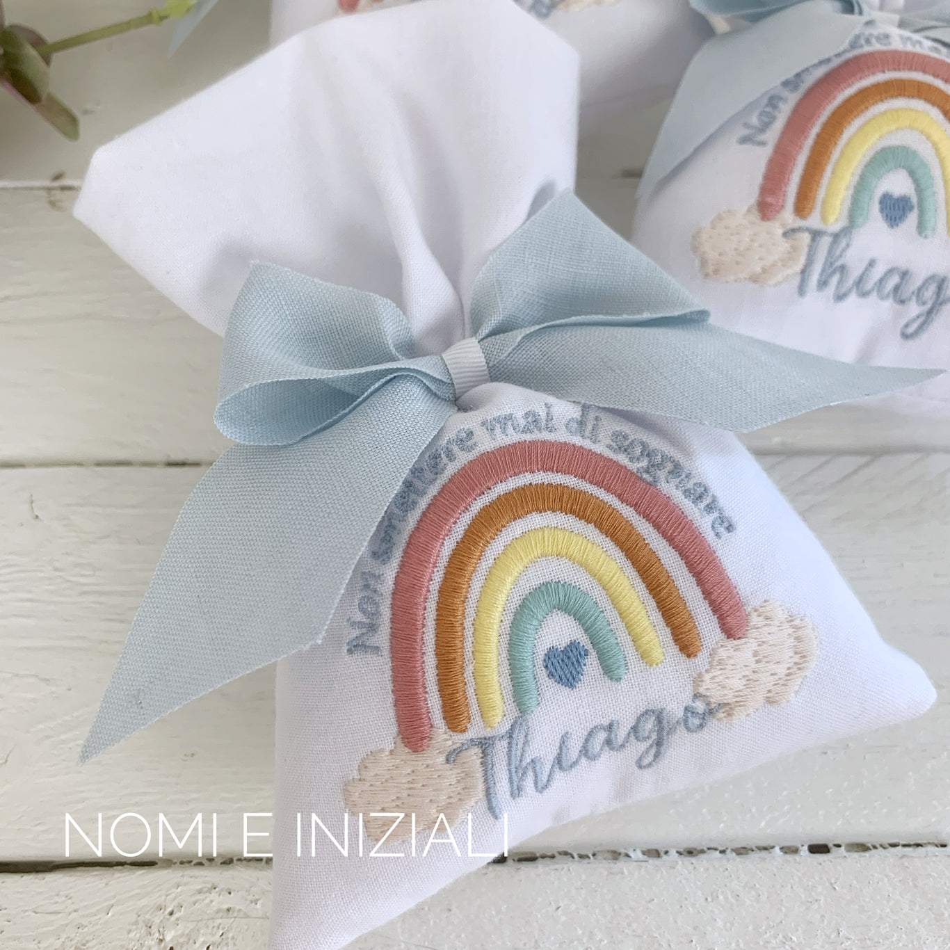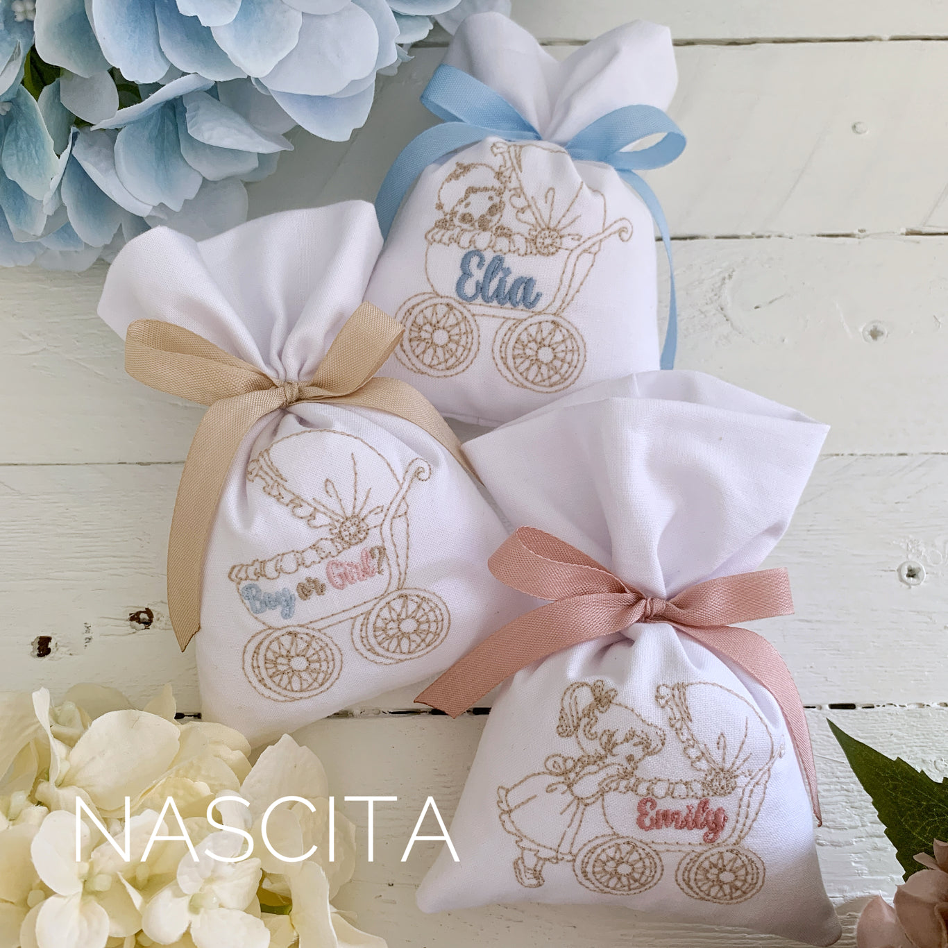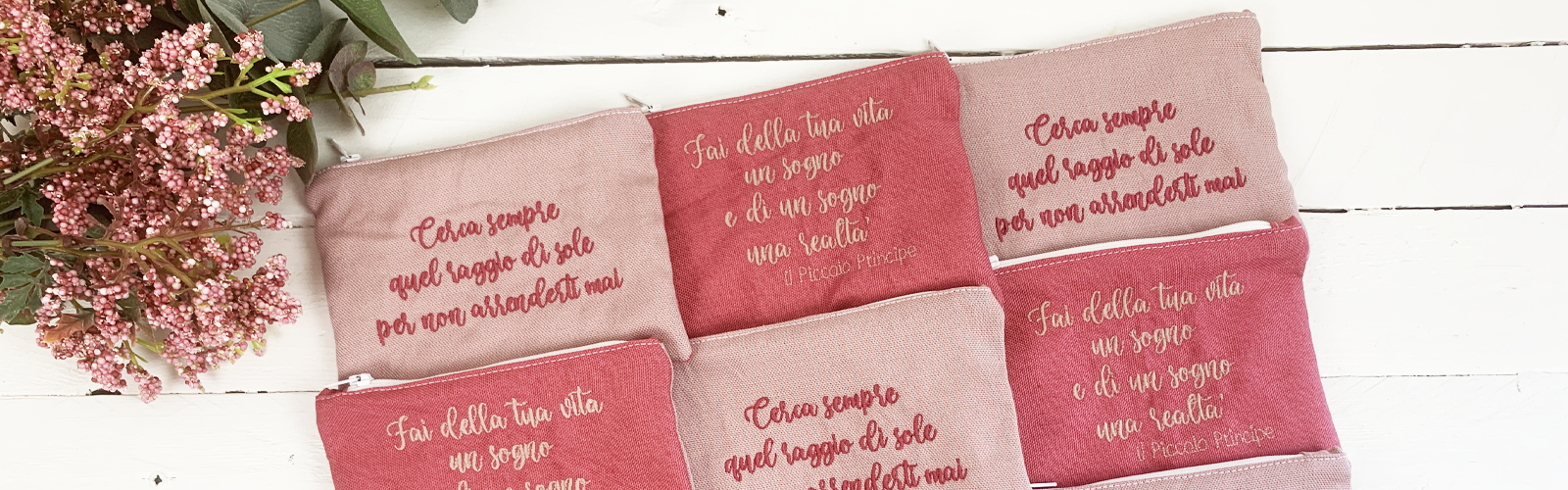 Bomboniere uniche ed eleganti per ogni occasione speciale: Nascita, Battesimo, Comunione, Cresima, Matrimonio, Laurea, Compleanno. Le Bomboniere con ricamo personalizzato cucYScuci sono ricordo tangibile di momenti indimenticabili da conservare per sempre. Realizziamo i tuoi desideri nei minimi dettagli: scegli la tua frase e il disegno da ricamare, ogni elemento è completamente personalizzabile secondo le tue esigenze.