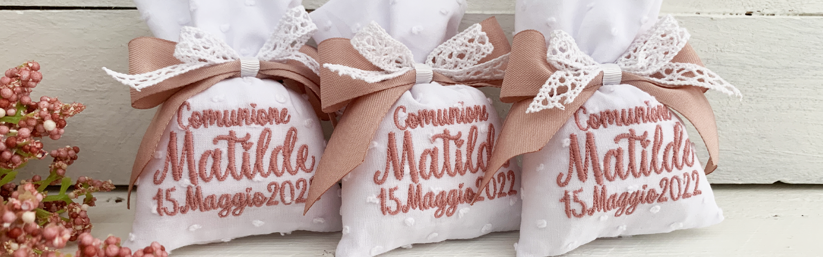 Puoi acquistarle anche non confezionate (la sola pochette ricamata, senza imbottitura, confetti, e nastrino).