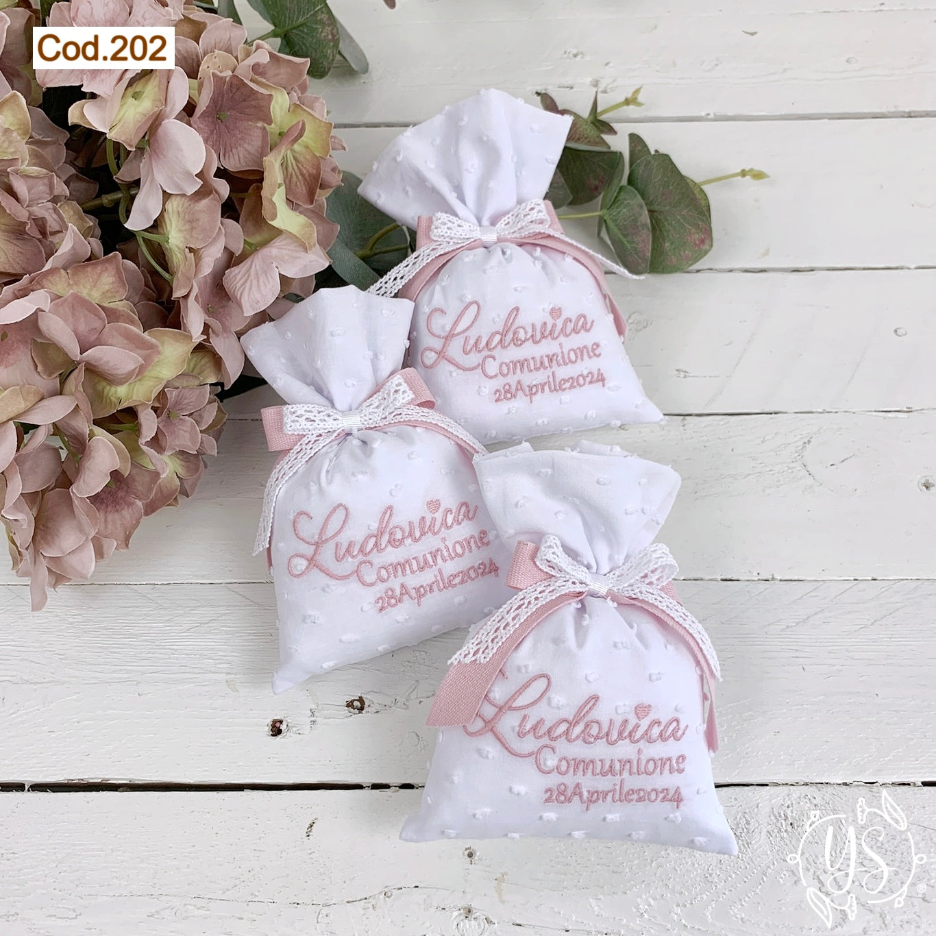 Puoi acquistarlo anche non confezionato (il solo sacchettino ricamato senza imbottitura, confetti, e nastrino).Non confezionata 2,50 € in meno al pezzo.