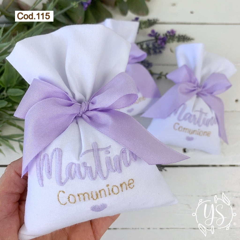 Puoi acquistarla anche non confezionata (la sola pochette ricamata senza imbottitura, confetti, e nastrino).