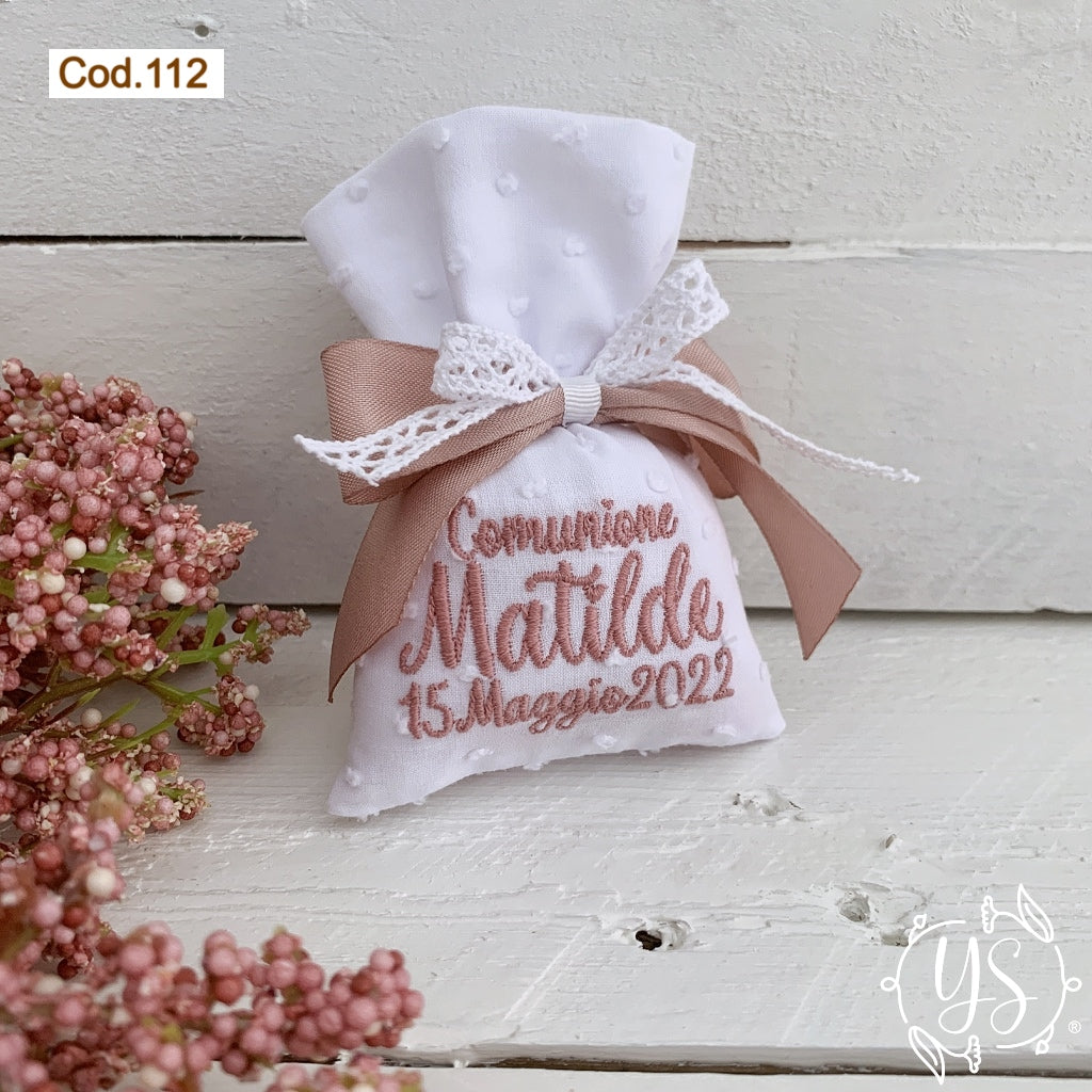 Puoi acquistarlo anche non confezionato (il solo sacchettino ricamato senza imbottitura, confetti, e nastrino).