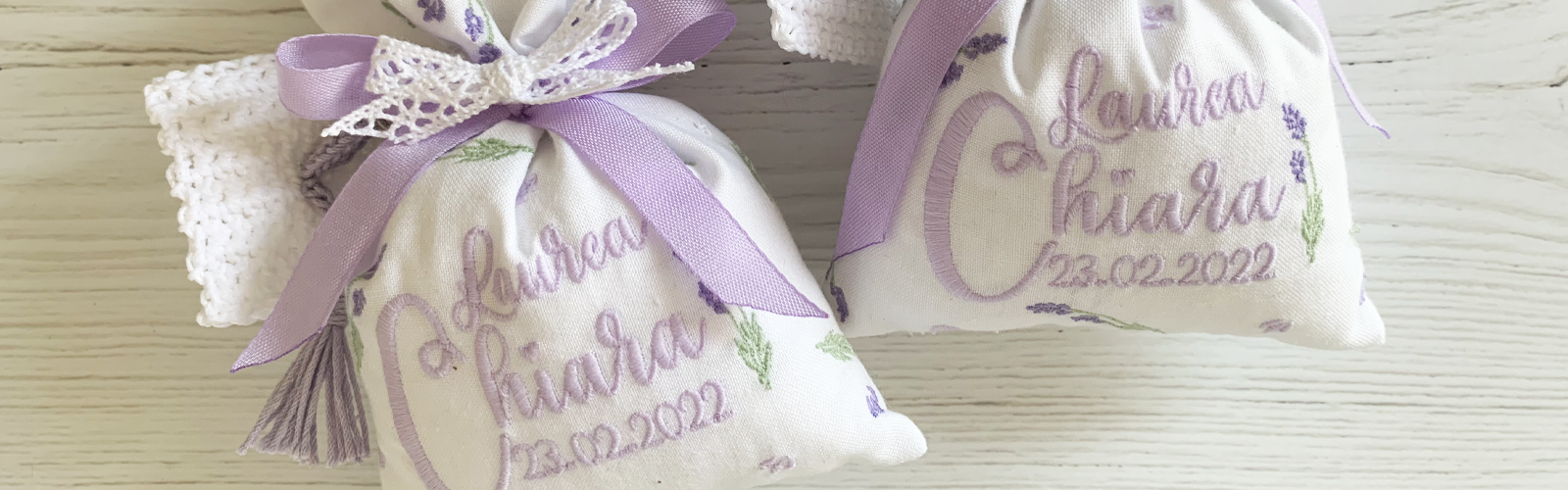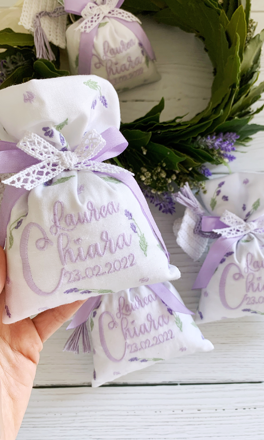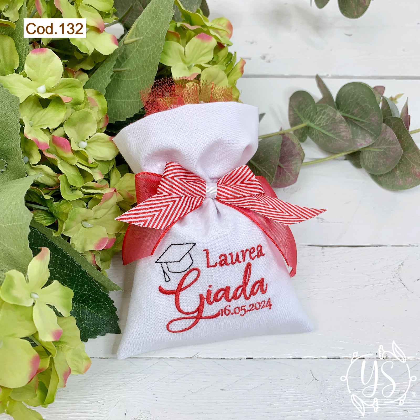 Un traguardo raggiunto con impegno, fatica e dedizione non può che essere festeggiato in grande stile con una bomboniera unica! Potrai personalizzare i nostri sacchettini scegliendo nome, data, tessuto, colore ricamo e un disegno che racchiuda tutto il percorso di studi! Realizziamo i tuoi desideri nei minimi dettagli: scegli la tua frase e il disegno da ricamare, ogni elemento è completamente personalizzabile secondo le tue esigenze.