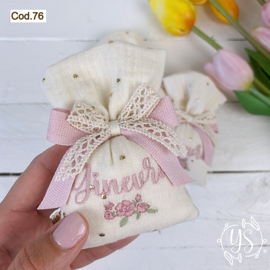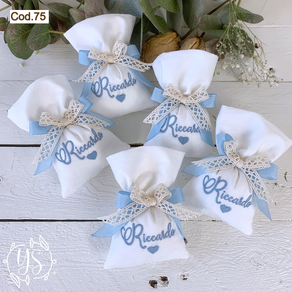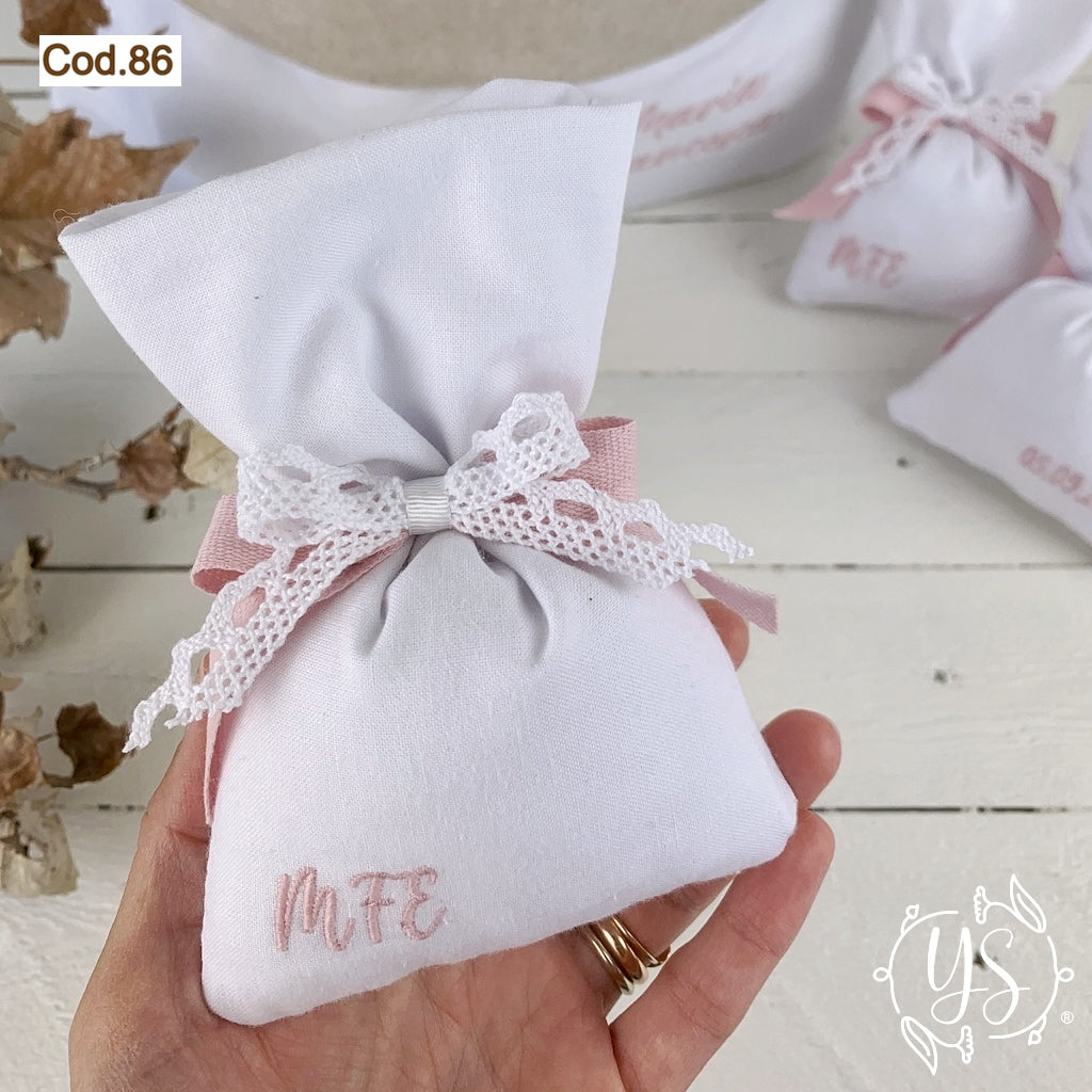 Puoi acquistarlo anche non confezionato (il solo sacchettino ricamato senza imbottitura, confetti, e nastrino).