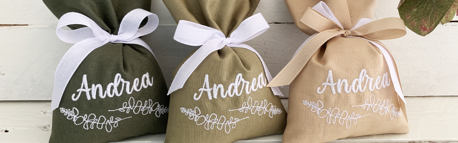 Esplora la nostra collezione di bomboniere, dove la personalizzazione è al centro di ogni creazione. Dai matrimoni ai compleanni, offriamo una vasta gamma di opzioni, da eleganti a divertenti, arricchite da nomi e iniziali che aggiungono un tocco personale senza eguali. Ogni bomboniera diventa così un messaggero di storie e ricordi, pronta ad emozionare chiunque la riceva. Realizziamo i tuoi desideri nei minimi dettagli: scegli la tua frase e il disegno da ricamare, ogni elemento è completamente personalizzabile secondo le tue esigenze.